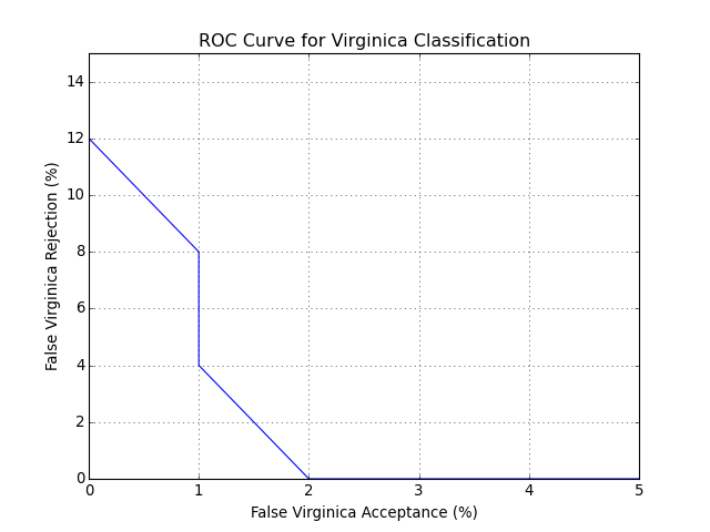 pyplot.xlabel("False Virginica Acceptance (%)")