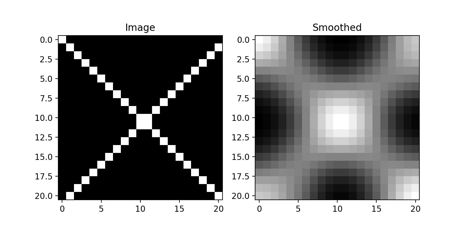 Complex image operations are usually wrapped up by classes. The usual work flow is to first generate an object of the desired class, specifying parameters that are independent on the images to operate, and to second use the class on images. Usually, objects that perform image operations have the __call__ function overloaded, so that one simply can use it as if it were functions. Below we provide some examples.