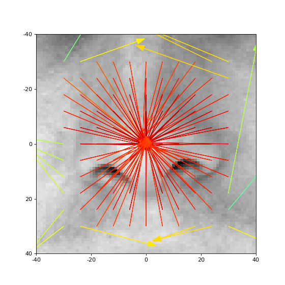 # plot the disparity as an arrow from the current location, with the given similarity as a color code