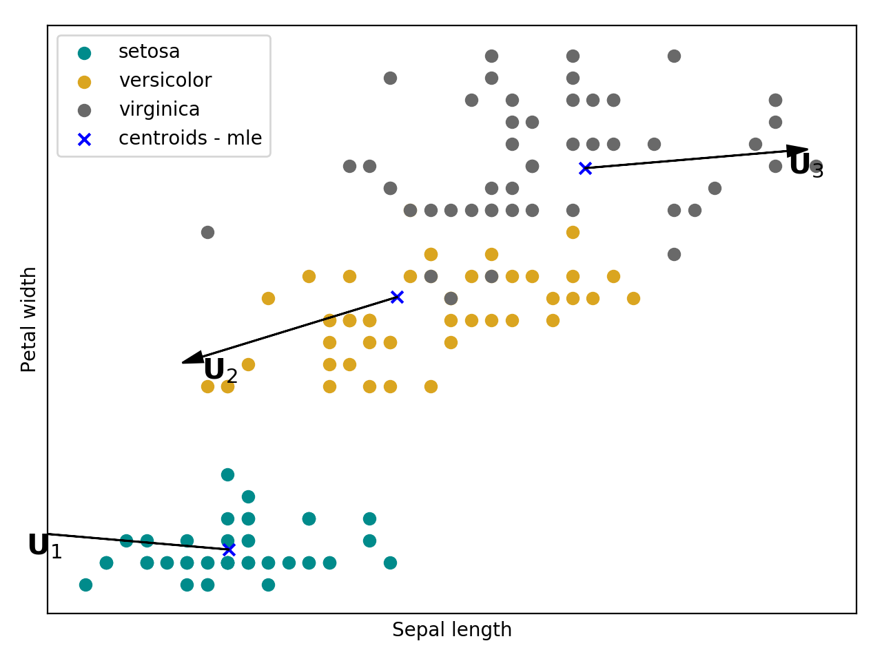 Bellow follow an intuition of the GMM trained the maximum likelihood estimator using the Iris flower dataset.
