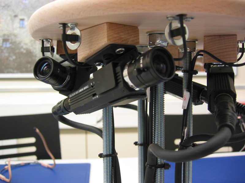 The Sony XC-555P is an ultra-compact color camera suited for a multimedia. The Sony XC-555P is connected a Sony Camera Adapter DC-700 for power supply, output the composite video signal to BNC connector and for video synchronization with the Blackburst signal. The Automatic White Balance (AWB) and Automatic Gain Control (AGC) are directly set on the camera. In the Smart Meeting Room, all Sony XC-555P cameras have been fitted with a 6mm lenses to perform a close-up views of each of the meeting participants.