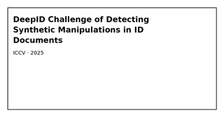 DeepID Challenge of Detecting Synthetic Manipulations in ID DocumentsJan 1, 2025·Pavel Korshunov,Vidit Vidit,Amir Mohammadi,Christophe Ecabert,Sébastien Marcel,et al.· 0 min read CiteTypeConference paperPublicationInternational Conference on Computer VisionpublicationsLast updated on Jan 1, 2025 ← AugGen: Synthetic Augmentation using Diffusion Models Can Improve Recognition Jan 1, 2025Detecting Text Manipulation in Images using Vision Language Models Jan 1, 2025 →
